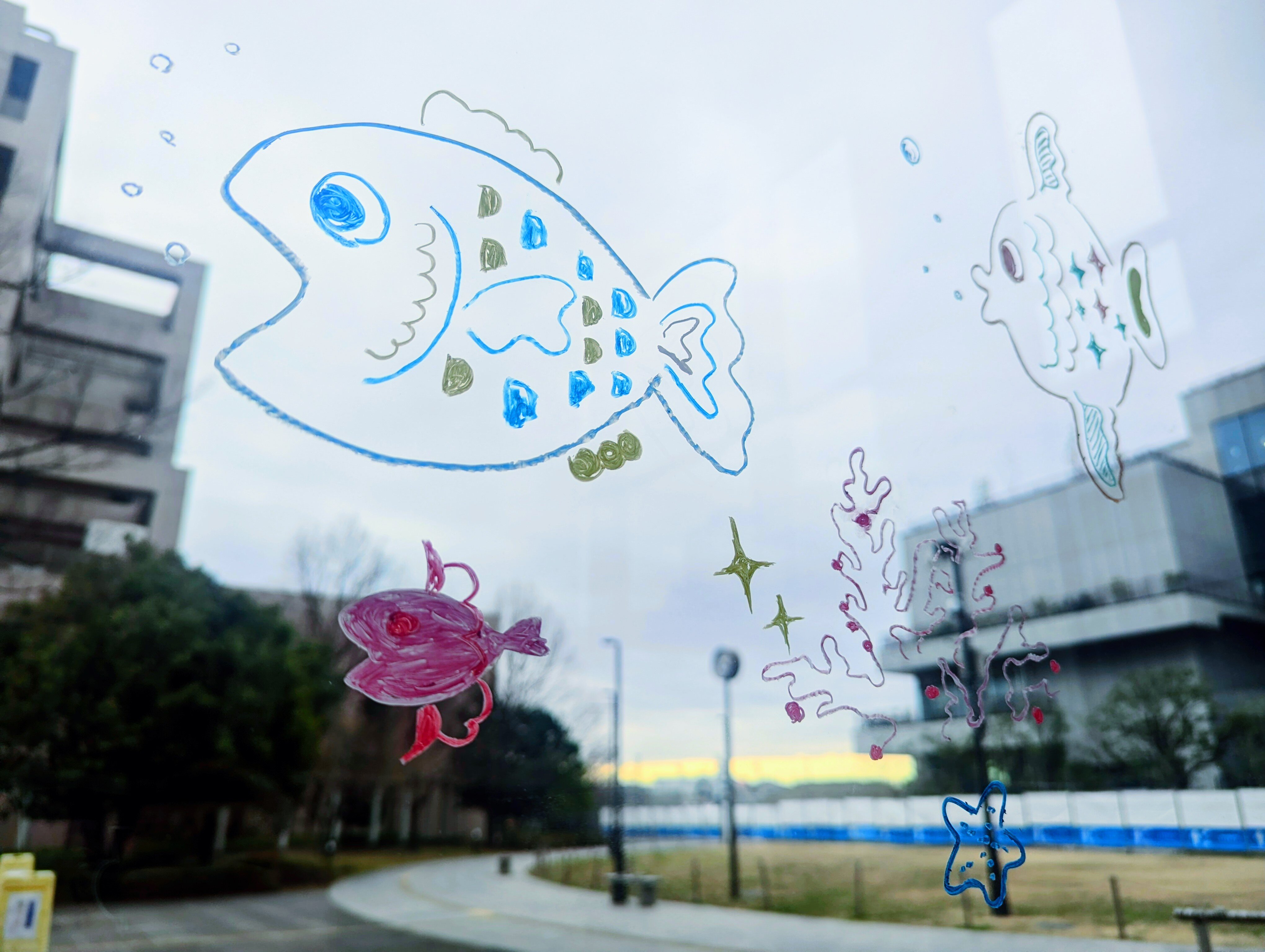とくべつなクレヨンで、窓ガラスに絵をえがこう!